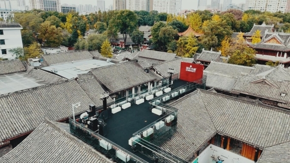 选择文殊坊屋顶作为大秀场地,是荷田水铺“场景战略”的极致体现。这个被誉为“成都最大屋顶喝茶圣地”的空间,将千年古刹的青瓦飞檐作为天然背景,构建出连接历史与当代的文化场域。